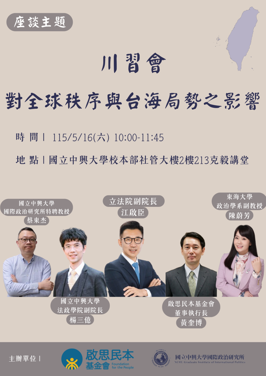 主 辦|啟思民本基金會、中興大學國際政治研究所